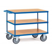 Dans cette gamme, vous trouverez donc tous les modèles de servantes les plus classiques comportant de un à quatre plateaux. Idéals pour le stockage et le transport de marchandises, deux catégories s’y distinguent : les servantes composées de plateaux en mélaminé (surface effet hêtre) et celles construites en tôle d’acier (livrées avec ou sans rebords).