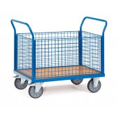 Chariot à dossiers grillagés 4 ridelles, de conception modulaire avec châssis profilé L innovant en acier, avec une capacité de chargement de 500 kg.