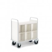Chariot de bureau à 12 casiers, utilisable pour déposer et transporter classeurs, dossiers et documents.
